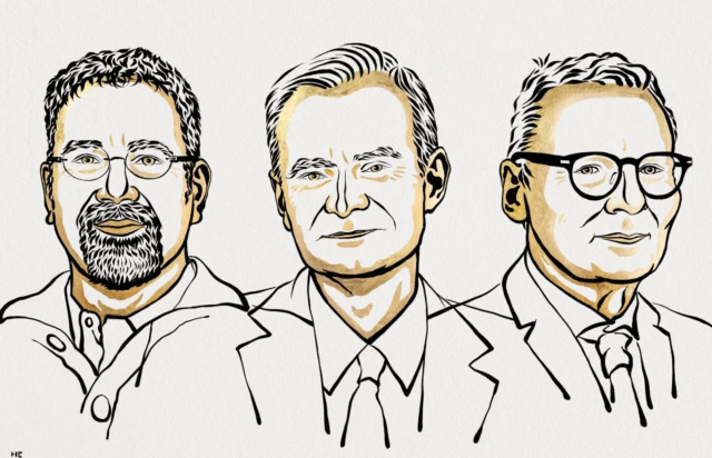 정치경제학자 세 명이 노벨 경제학상 공동 수상하다.