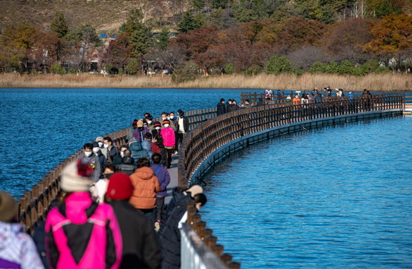 영랑호를 따라 걷다 보면 영랑호수윗길이 나옵니다. 물 위에 떠 있는 부교를 천천히 걸으며 탁 트인 호수의 풍경을 감상하면 가슴이 뻥 뚫리는 시원함을 느낄 수 있습니다.