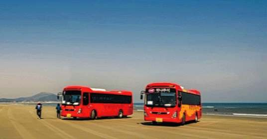 농여해변은 지질학적으로 주목받는 두 가지 볼거리가 있다. 나무처럼 보이는 바위와 모래톱이 길게 이어진 풀등이다.