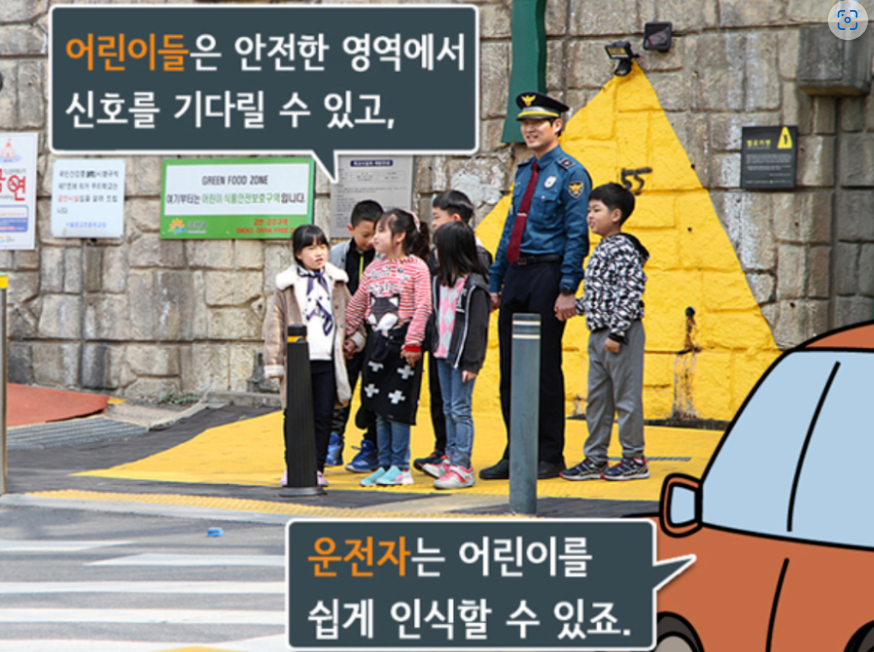 - 아이들이 이곳에 모여서 대기하도록 유도해 교통사고를 예방하는 데 도움