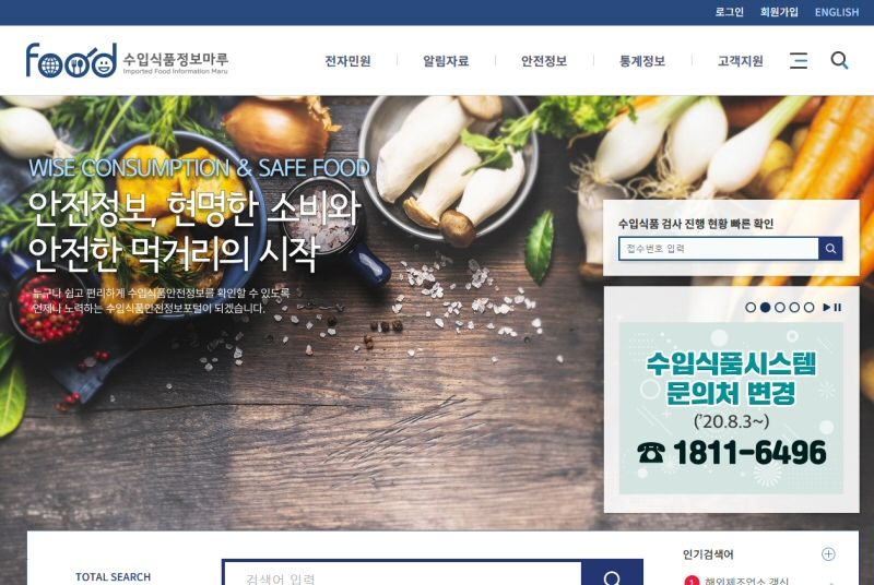* 수입식품 조회 : 수입식품의 제품구분별, 제품명, 품목별 검색을 통해 데이터를 조회