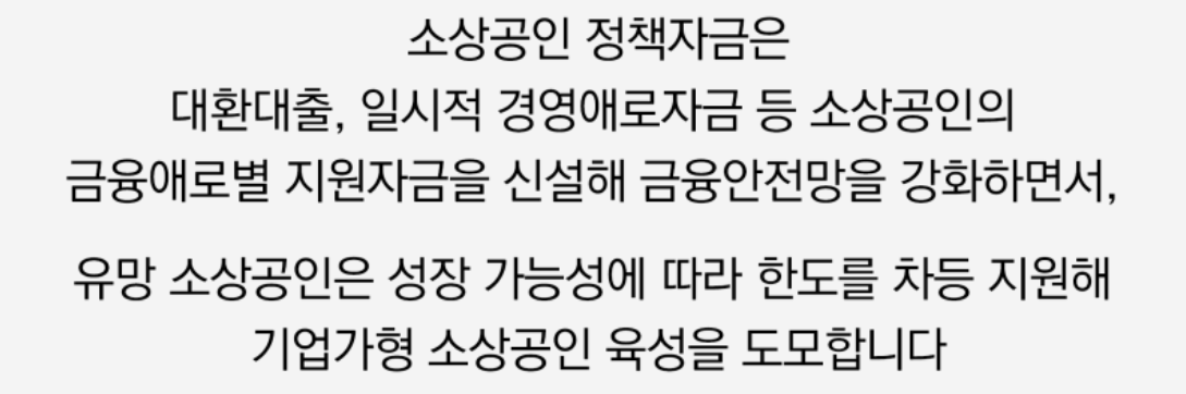 * 저신용 소상공인, 장애인기업, 재난 피해 소상공인 등 상대적으로 취약한 소상공인을 위한 자금
