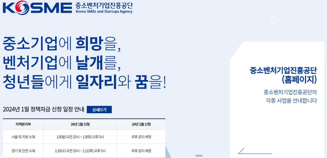 ▶ 2024년도 중소기업 정책자금 신청(1월 8일부터 신청)