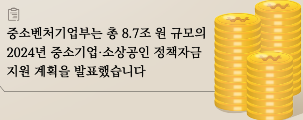 * 2024년 중소기업 · 소상공인 정책자금 지원금 : 총 8.7조 원 규모