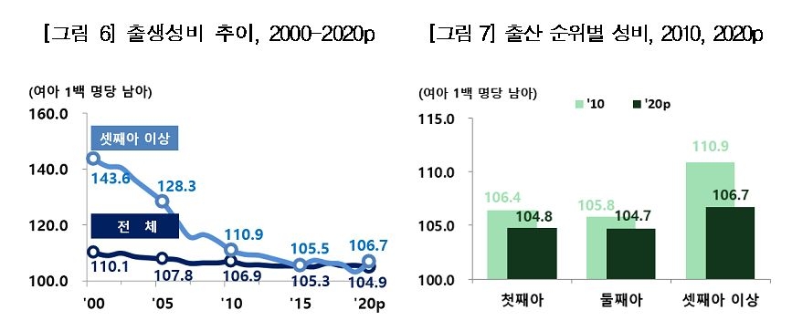 보고서는 "1970년부터 30년 이상 출생성비가 자연성비를 넘어서는 수준이 지속됐다"라며, "이들이 재생산 연령대에 접어들었을 때 결혼 성비에도 지대한 영향을 미친 것"이라고 설명했습니다.