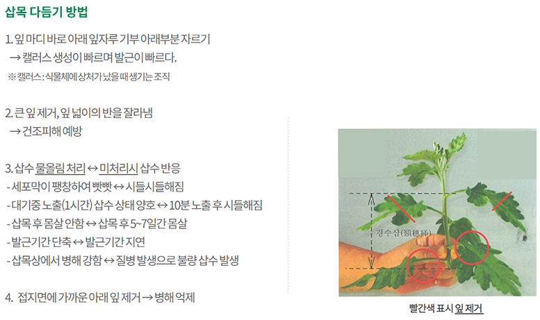- 국화 뿌리의 생육한계 온도는 -10℃ ~27℃(내한성)