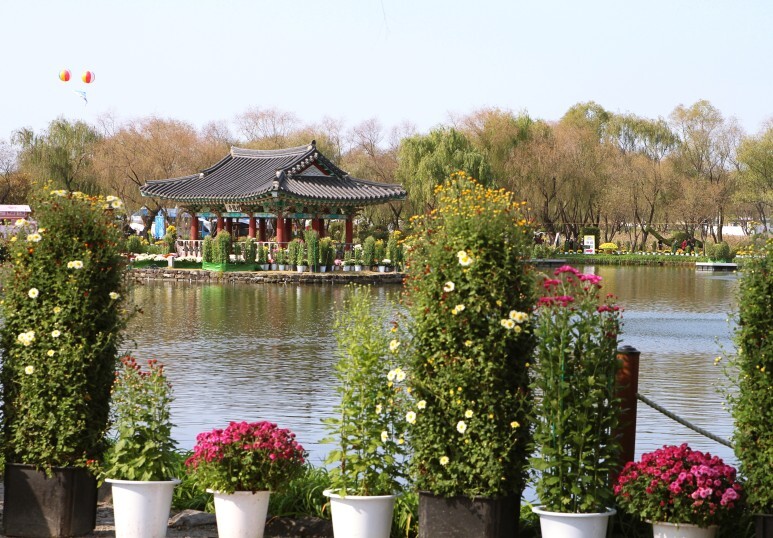 이곳은 15,000㎡ 규모로 4만여 점 넘게 다양한 국화 작품들을 만나볼 수 있고, 궁남지와 어우러진 아름다운 꽃들과의 만남이 가득할 곳인 축제의 현장으로 모셔 보겠습니다.