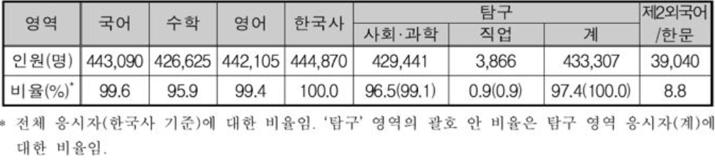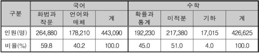◆ 국어, 수학 영역 선택과목별 응시자 현황