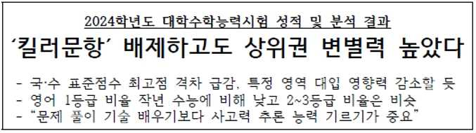 3. '킬러문항' 요소는 배제됐지만, 변별력 높은 문항이 포함되면서도 모든 문항이 공교육 내에서 출제