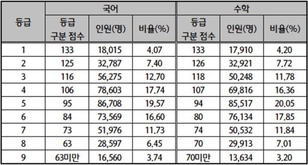 ◆ 2024학년도 수능 영역/과목별 등급컷