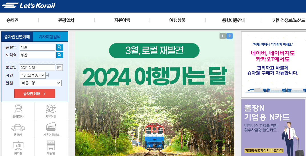 * 여행상품 : 동해안 7번 국도 따라 1박 2일 여행, 제천 힐링 기차여행, 남도 미식 여행 등