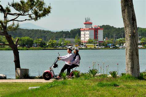경포호 라이딩 코스는 스카이베이호텔 경포에서 경포호수광장, 경포가시연습지, 강릉 3·1 운동기념공원을 지나 경포대와 참소리축음기·에디슨과학박물관으로 이어진다.
