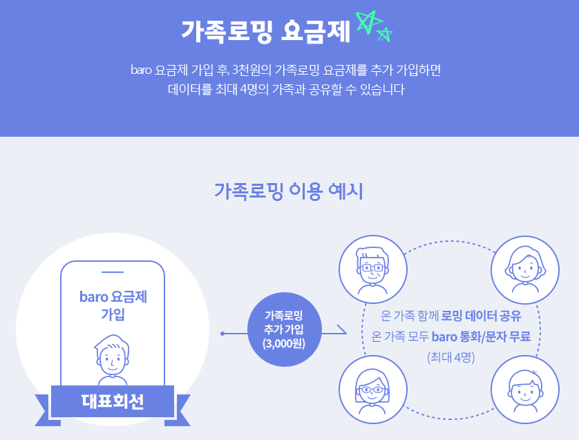 1. 1명만 baro 요금제 쓰면, 온 가족이 데이터 나눠 쓰고 baro통화∙문자도 무료